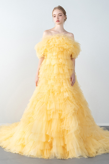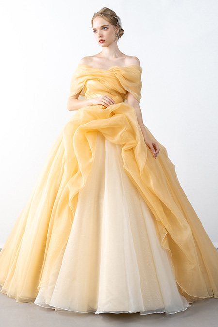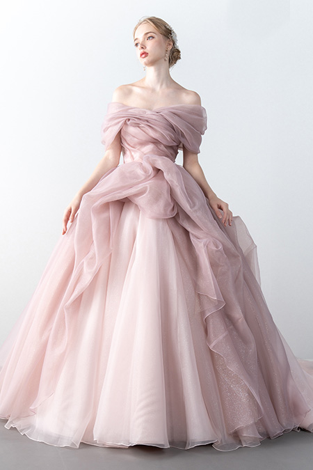 トレンドのオフショルダーは艶めき、ボリューム感のあるふわふわドレスは最高に可愛い。